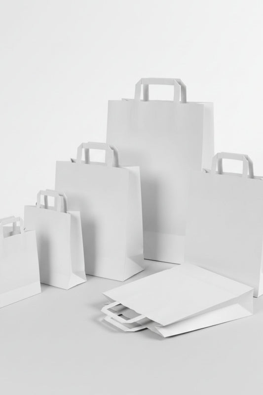 Düz Saplı Kraft Çanta - Kraft Poşet 27 cm x 16 x 29 cm 90 gr. Beyaz 250 Adet