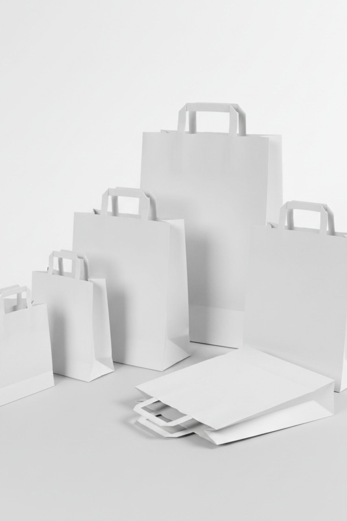 Düz Saplı Kraft Çanta - Kraft Poşet 27 cm x 16 x 29 cm 90 gr. Beyaz 250 Adet Paket servisini kullanmak için uygundur.